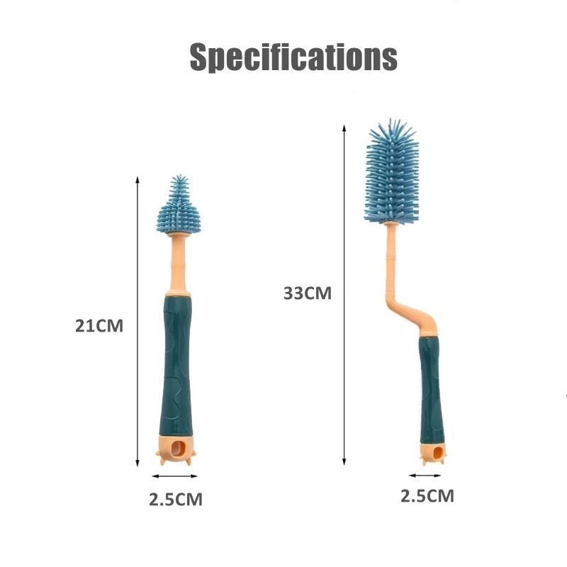 3 in 1 Baby milk bottle brush set / Soft Silicone bottle Brush 360◦ rotary nipple teat brush/Straw Cleaner