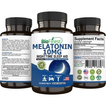 Biofinest Melatonin 5mg /10mg Supplement - Fast Action Drug Free - Natural Nighttime Sleep Aid - Fall Asleep Faster, Stay Asleep Longer, Wake Up Feeling Rested - Normal Sleep Pattern - Made in USA (120 Coated Tablets) Melatonin is a hormone produced naturally by the pineal gland in the brain. It regulates the body's circadian rhythm, which controls the sleep-wake cycle. Biofinest Melatonin supplements are commonly used as a sleep aid, and they come in different strengths, including 5mg and 10mg. ✅Improved Sleep Quality: One of the main benefits of melatonin supplements is that they can help improve sleep quality. Studies have shown that melatonin can reduce the time it takes to fall asleep and increase total sleep time, which can lead to better sleep quality and more restful sleep. ✅Reduced Jet Lag: Melatonin supplements are also commonly used to reduce the effects of jet lag. Jet lag occurs when the body's internal clock is disrupted by traveling across time zones. Melatonin can help reset the body's clock, making it easier to adjust to a new time zone and reducing the symptoms of jet lag. ✅Enhanced Immune System: Melatonin has also been shown to have antioxidant properties, which means it can help protect the body against damage from free radicals. Free radicals are unstable molecules that can cause cell damage and contribute to a variety of diseases, including cancer and heart disease. By acting as an antioxidant, melatonin may help enhance the immune system and reduce the risk of disease. ✅Reduced Anxiety: Some research suggests that melatonin supplements may also have anxiety-reducing effects. Melatonin can help regulate the body's stress response, which can lead to reduced anxiety and improved mood. ✅Safe and Non-Habit Forming: Unlike many other sleep aids, melatonin supplements are generally considered safe and non-habit forming. While some people may experience mild side effects, such as dizziness or headaches, these are typically rare and short-lived. Additionally, because melatonin is a naturally occurring hormone in the body, it is unlikely to cause long-term harm or dependence. Suggested Use/ How to Use: As a dietary supplement, take 1 capsule once a day, or as directed by a health professional. Store in a cool dry place. Do not expose under sunlight or moisture. Close the cap after opening. Why Choose Biofinest Supplement: -Made in USA premium quality, sustainably sourced from trusted origin, formulated with high strength pure natural ingredients for optimal absorption. We use custom formulation to integrate all the best ingredients for your maximum health benefits. Check and compare our formulation (more health benefits in a bottle for you!) -Big bottle for huge value for money, best savings per capsule. Direct USA manufacturer. That’s how we keep the price low for premium products. Quality products at a fraction of the going price. Check and compare our price per capsule (half price or less is common!) -Pure, gluten-Free, non-GMO, 3rd party lab tested, GMP/FDA registered facility. Free of pesticides, herbicides, chemical fertilizers, fillers, yeast, sugar, soy, dairy, antibiotics and preservatives. We are proud to offer only 100% safe supplements for you and your family. -Double layer airtight sealed to ensure product authenticity, maximum protection and prolonged freshness. Industry grade dark amber bottle packaging to protect the supplement against any exposure to UV light and moisture. -Easy to use flip-open-close bottle cap for daily use; long expiry date (at least >1 year, unless clearance/ otherwise stated), convenience to carry around for home, office, workout and traveling. -Smooth and easy to swallow form, no oversize capsules, no nauseating bitter after taste. -Enteric coatings are used*: Our tables are covered with a layer of coating to protect them against dampness or bacteria. Tasteless, no bitter aftertaste, smooth to swallow, as it prevents the supplement being released in the acidic conditions of the stomach before reaching the intestine, hence maximizing the efficacy and absorption. *Applicable to tablets form product only. *Join our COMPLIMENTARY brand membership, FREE Today! (Get exclusive coupons, discounts, giveaways, new launches notification, VIP customer support). *Buy more, Save more! Mix-and-match any items from Biofinest’s range of superfoods, supplements, health and beauty products for bundle discount!