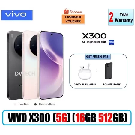 ⭐ VIVO X300 (5G) ⭐16GB + 16GB Extended RAM 512GB ROM ⭐ Buy from Authorized Dealer for the Peace of Mind ⭐ Brand New Sealed Set ⭐ Local Set with 2 Years VIVO Warranty ⭐ TAX Invoice will be provided for Company claim / Warranty Claim Purchase with FREE GIFTS ************************************************* FREE VIVO BUDS AIR 3 FREE 10,000mAH POWER BANK Key Specification *************************************************** 32GB ( 16GB +16GB Extended RAM) 512GB ROM 6.31 inches AMOLED Display Dimensity 9500 Android 16, OriginOS 6 Rear 200MP + 50MP + 50MP Front 50MP 6040mAh Typical capacity (3.77V) 90W FlashCharge + 40W Wireless FlashCharge Bluetooth 6.0 eSim Support NFC Enable ⭐⭐⭐⭐ Redeem Shopee Voucher for more savings ⭐⭐⭐⭐